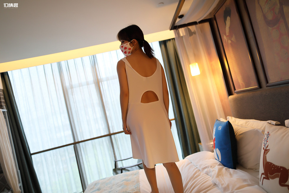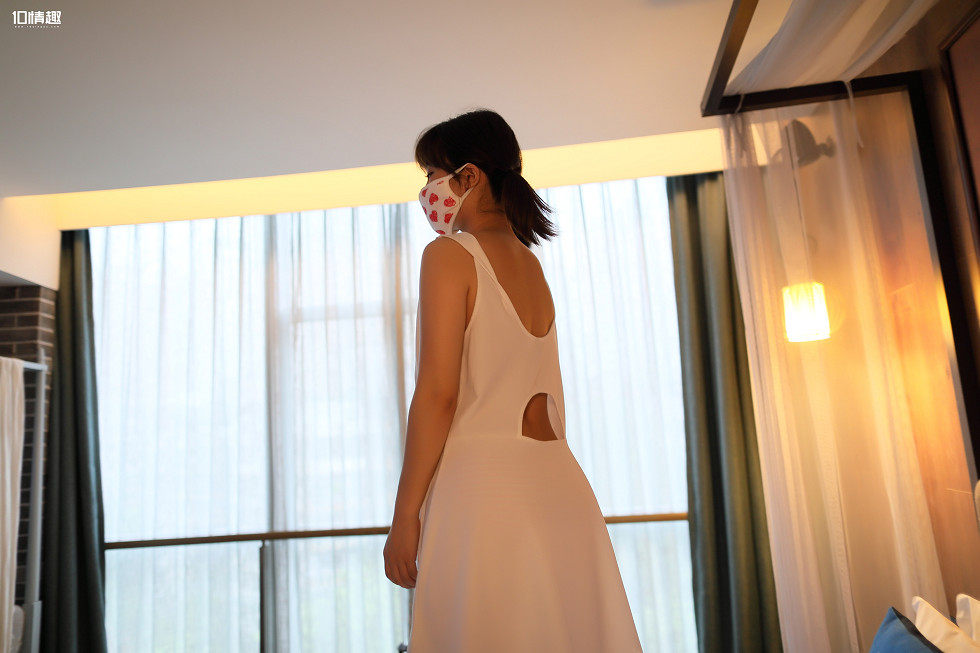 ROSI口罩系列NO.817_白色连身裙马尾辫mm红色内裤性感写真